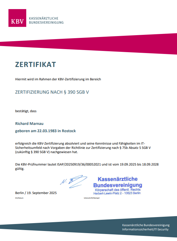 Die IT stellt oft das Rückgrat einer Praxis im 21. Jahrhundert dar. Ohne Sicherheit sind die Praxisdaten und Patienteninformationen in Gefahr und der Betrieb wird schnell durch ein Trojaner zum Erliegen gebracht. Es ist daher besonders wichtig den richtigen Schwerpunkt zu setzen. Die Systeme dürfen nicht einfach nur „laufen“ – sie müssen sicher konfiguriert sein. Mit einer getesteten Datensicherung und verschlüsselten Systemen entsteht eine professionelle IT-Umgebung auf die sich Inhaber, Patienten und Praxismitarbeiter verlassen können. Wir freuen uns darauf Sie zu unterstützen.